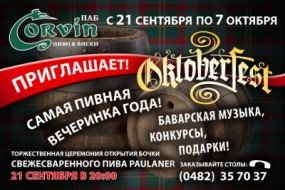 Торжественная церемонией распечатывания бочки свежесваренного пива Паулайнер, баварская музыка, конкурсы, подарки.