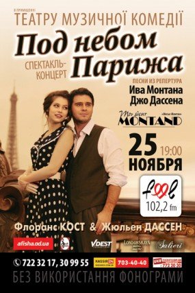 Судьбы Монтана и Дассена пересекаются в начале пятидесятых, они дружат и поддерживают друг друга. В программе самые знаменитые в мире, в России и Советском Союзе французские песни, ставшие мировыми шлягерами.Их исполняют на всех языках мира, в том числе и на русском. Во Франции этот спектакль приурочен к юбилею французского певца Ива Монтана, мы делаем упор на другого героя спектакля Париж.