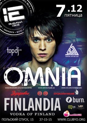 Треки Omnia выходят на одном из самых масштабных и влиятельных лейблов мира — Armada Music. Уже 3 года подряд его работы попадают в престижные компиляции ‘A State Of Trance’ от Armin van Buuren, а также Toronto ’09 (Markus Schulz), Ministry Of Sound — Trance Nation (Andy Moor). Артист Virus Booking. Самый успешный и востребованный украинский саунд продюсер на международной EDM арене.Самый громкий хит Omnia, написанный совместно с ещё одной артисткой Virus Music, Dj Ira' – трек под названием The Fusion – около месяца продержался на 1-м месте в trance чарте популярнейшего музыкального портала beatport. После чего The Fusion назвали треком года сразу 5 диджеев из Top 100.