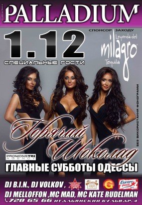 Каждую субботу мы представляем Вашему вниманию эксклюзивную вечеринку - "Главные субботы Одессы". Только для Вас специальные гости: группа "Горячий шоколад".