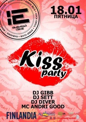 " Kiss Party " - ночь клубных поцелуев . Все кто желает обрести новые знакомства, провести время с любимым человеком или просто отдохнуть , ждем вас в эту пятницу.