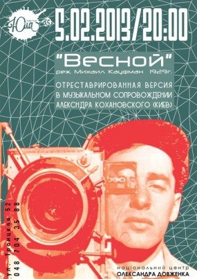"Весной" - второй из серии киноперформансов в клубе Юла-85, в рамках которой отраставрированные фильмы украинского немого кинематографа 1920-х годов озвучиваются современными музыкантами вживую.