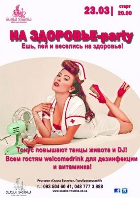 Весь вечер за здоровьем следить очаровательная медсестричка, тонус повышают танцы живота, нервную систему успокаивает Dj!
