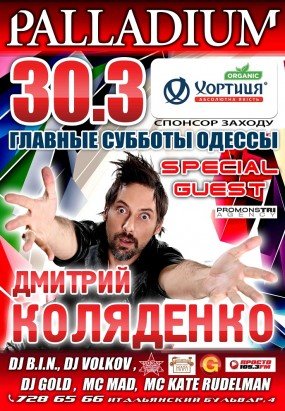 Каждую субботу мы представляем Вашему вниманию эксклюзивную вечеринку - "Главные субботы Одессы". Только для Вас Special Guest- Дмитрий Коляденко.