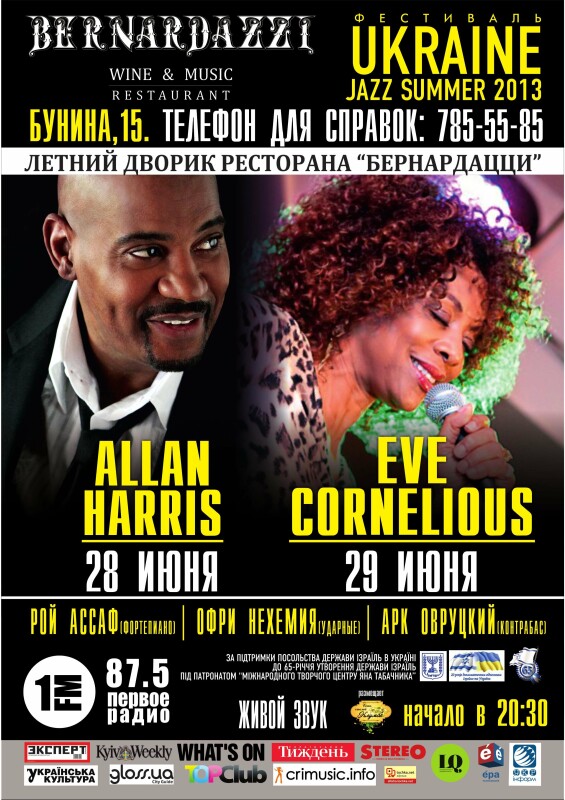 29 июня на сцене летнего дворика ресторана «Бернардацци» выступит Ив Корнелиус и квартет Арка Овруцкого (США-Украина-Израиль).