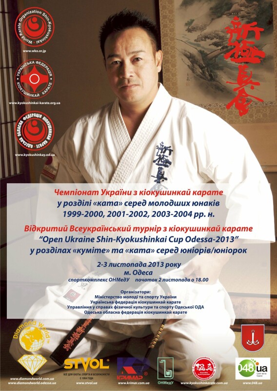 Состоится чемпионат Украины по киокушинкай каратэ в разделе «ката» среди младших юношей и младших девушек в возрастных группах 1999-2000, 2001-2002 и 2003-2004 годов рождения и открытый Всеукраинский турнир по киокушинкай каратэ «Open Ukraine Shin-Kyokushinkai Cup Odessa-2013 »в разделах« кумитэ »и« ката »среди юниоров / юниорок в возрастной группе 1996-1997 годов рождения.