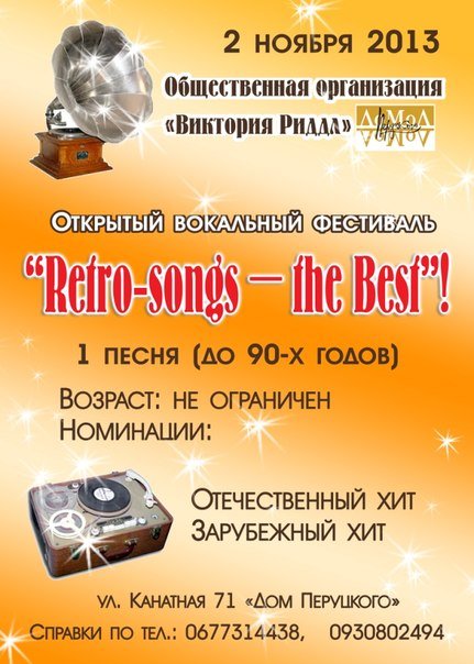 Приглашаем всех желающих на Открытый вокальный фестиваль "Retro-songs – the Best".
