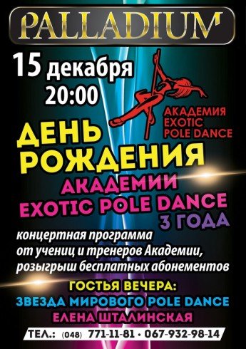 Школа танцев в Одессе Пол Денс ,"Академия Exotic Pole Dance", приглашает вас отпраздновать 3 года жизни и окунуться в мир незабываемых впечатлений от концерта.