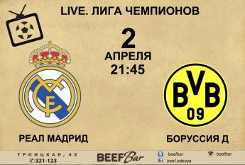 Лига Чемпионов и BEEF Bar представляют: «Реал Мадрид» - «Боруссия Д.» матч, который Мы смотрим Вместе!