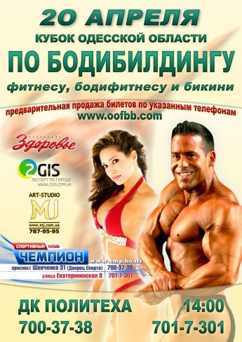 Кубок Одесской области по бодибилдингу, фитнесу, бодифитнесу и бикини 2014 года пройдёт 20 апреля в ДК Политеха.