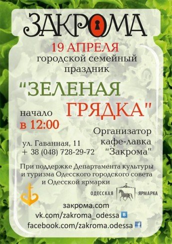 "Зеленая грядка" (линк на facebook.com/events/271184229725614/) – отличный старт выходных!