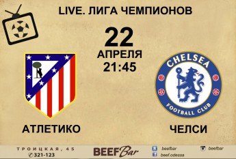 BeefBar приглашает всех любителей и активных фанатов футбола на матч Лиги Чемпионов. Только в BeefBar можно получить ощущение полного присутствия на стадионе. 8 экранов телевизоров, большой проектор, море пива и закусок.