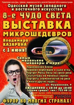 Уникальная выставка микроминиатюр Владимира Казаряна подарит ценителям прекрасного много радостных мгновений и оставит неизгладимое впечатление на всю жизнь!