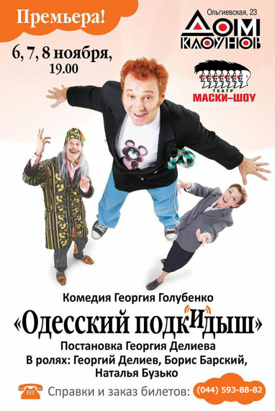 В Одесском театре «Маски» — премьера. Здесь при полном аншлаге стартует новый спектакль «Одесский подкидыш» по пьесе одесского драматурга Георгия Голубенко. Гротескная комедия об эксцентричном миллионере, 51-летнем авантюристе с 11 «ходками» за спиной и холодной бизнес-вумен с шутливыми отсылками к современной политической ситуации в Украине.