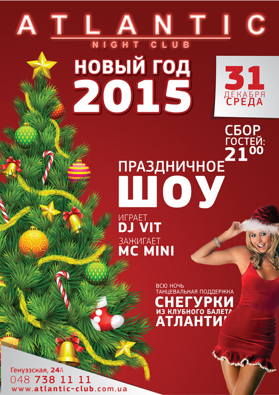 Ведущая праздника дочка Санта Клауса mc «Mini», всю ночь с вами танцевальная поддержка снегурки гоу гоу, праздничное настроение от DJ Vita и DJ Alex. В 00-30 специальная новогодняя шоу программа – вас порадует лучший балет юга Украины «Александрит», оригинальные номер танцующие Санта Клаусы и специальная гостья, имя которой мы держим в секрете.