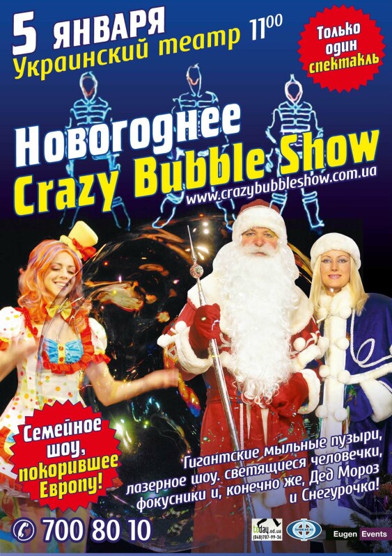 Шоу покорившее Европу! Гигантские мыльные пузыри, лазерное шоу, светящиеся роботы, настоящий снег, а также фокусники и Дед Мороз со Снегурочкой в фойе театра!