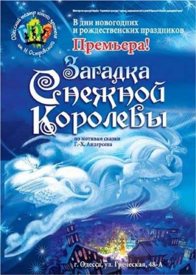 А тех, кто придет на яркий и наполненный музыкой и песнями спектакль Одесского ТЮЗа по мотивам этой сказки, ждут и вовсе невероятные чудеса: ведь им предстоит разгадать еще одну, совсем уже новую, загадку Снежной Королевы. И разгадка, поверьте, окажется поистине счастливой для всех – и для героев спектакля, и для зрителей.