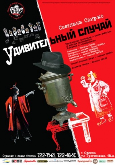 "Удивительный случай" - спектакль в жанре драматической клоунады по произведениям гениев абсурда ХХ века Даниила Хармса и Александра Введенского о жизни, смерти и любви в масштабах коммунальной кухни. Мировая премьера последней песни, записанной Эдуардом Хилем на стихи Д.Хармса.