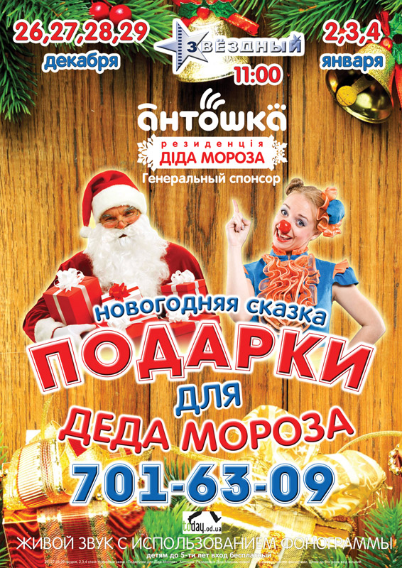Детей ждут увлекательные викторины от Даши Путишественницы, супер трюки от Панды Кунгфу, возможность поиграть в снежки с Волком, а так же игры, конкурсы, подарки, дискотека с Дед Морозом и много сюрпризов.