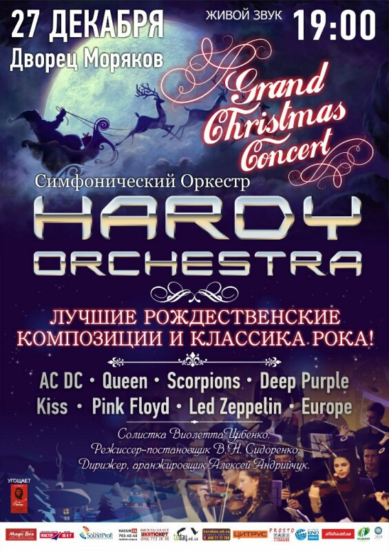 Hardy Orchestra - симфонический оркестр, с успехом начавший новый сезон в 2014 году выступлениями с программой "Легенды Рок эпохи". В программе оркестра исполнение самых известных композиций легендарных групп эпохи расцвета рок музыки: Queen, Deep Purple, Led Zeppelin, Scorpions и многих других, а также самые известные, самые узнаваемые и всеми любимые Рождественские мотивы.