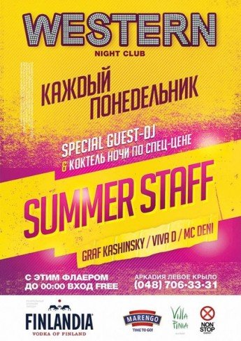 Каждый понедельник тематическая вечеринка "Summer Staff"