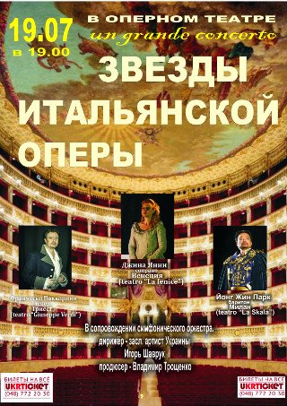 На сцене Одесского Национального Театра Оперы и Балета Вас ждет встреча с мастерами итальянской оперы в Большом концерте в сопровождении симфонического оркестра.