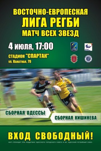 Состоится противостояние сборных Одессы и Кишинёва в рамках «Матча всех звезд» Восточно-Европейской Лиги Регби. Эта игра станет финалом дебютного розыгрыша международного турнира, в котором приняли участие по три команды из Южной Пальмиры и Молдовы. На поле выйдут лучшие игроки всех клубов. А так как игра носит товарищеский характер, зрители увидят масса ярких и красивых попыток, захватов, схваток, скоростных прорывов и настоящей мужской борьбы.