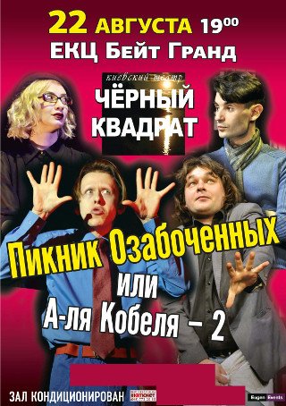 Киевский театр Черный квадрат представляет: продолжение нашумевшего спектакля «А-ля Кобеля, или… всё, что движется», «Пикник озабоченных, или А-ля Кобеля 2».