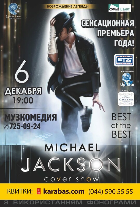 Все хиты великого Джексона в исполнении лучших артистов ! В сопровождении самого известного симфонического оркестра страны ! – «Lords of the Sound». Только живой вокал, ошеломляющая хореография, световое и звуковое шоу, впечатляющая инсталляция. Более 50 участников на сцене.