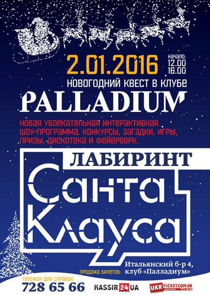 В нашем новогоднем квесте вас ждет новая увлекательная интерактивная шоу-программа, конкурсы, загадки, игры, призы, дискотека и фейрверк.