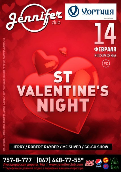 Приглашаем всех влюбленных на нашу влюбленную вечеринку "St Valentine's Night".