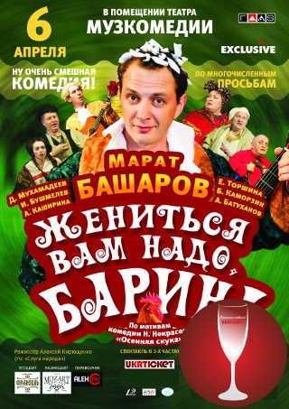 В главной роли Комедийного спектакля "Жениться Вам надо, барин" -Марат Башаров.