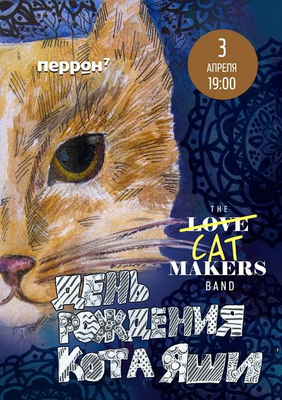 Специально к особому случаю А. Коханчик и ансамбль CatMakers исполнят самые известные рок-хиты о котах (такие как "All You Need is Cat", "It's My Cat", "Cat Must Go On" и др), также вас ждет праздничный стол с любимыми блюдами кота Яши.