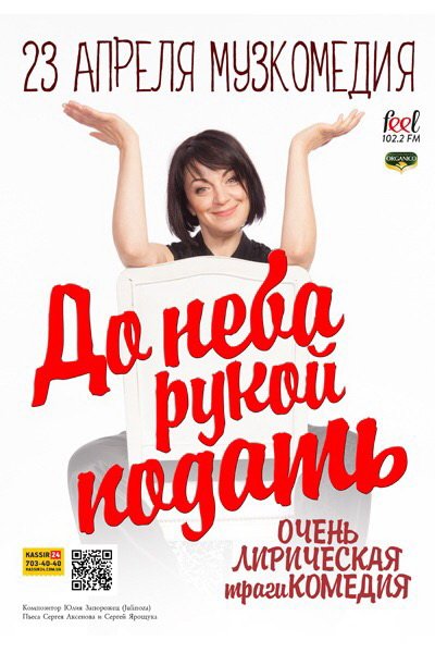 «До неба рукой подать» - самая неожиданная украинская премьера этого года. Трагикомедия о прочности семейных уз, рассказанная в жанре мюзикла повеселит и даже заставит прослезится самого взыскательного зрителя. В одном спектакле собраны самые яркие «звезды» лучших одесских театров. Этот актерский ансамбль порадует театралов необычным и новым амплуа их кумиров.