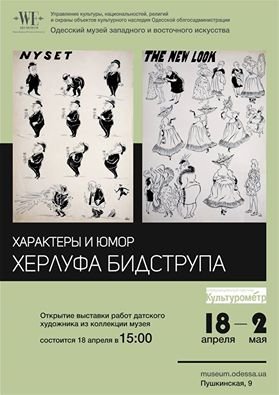 В Одесском музее западного и восточного искусства хранится большое собрание работ датского карикатуриста и мы решили познакомить публику с некоторыми из них. У Вас есть замечательная возможность, в Одессе – городе юмора, посетить выставку одного из самых ярких художников-юмористов 20-го века. На открытии, 18 апреля в 15:00, будет показан мультфильм Льва Атаманова «Скамейка», созданный на основе комиксов Херлуфа Бидструпа.