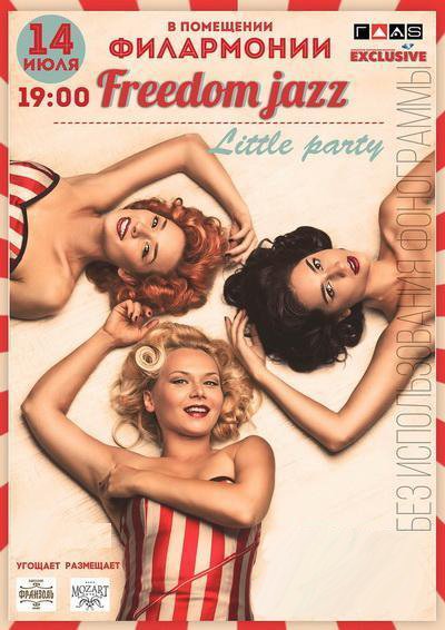 На грандиозном шоу «LittleParty» зрителей ожидает исключительно живой звук, необычные и новые образы Freedom-Jazz, мировые хиты в джазовой и свинговой обработках и, конечно же, незабываемые впечатления и буря незабываемых эмоций.