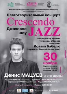 Уникальное ДЖАЗОВОЕ ШОУ в рамках международного фестиваля «Crescendo». Благотворительный концерт. Все вырученные средства пойдут на создание в Одессе памятника писателю Исааку Бабелю.