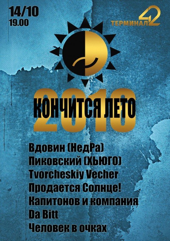 XIIІ ежегодный фестиваль памяти безвременно ушедших музыкантов «Кончится лето» состоится 14 октября в уютном помещении «Терминала 42». И пусть вас не смущает, что на календаре середина осени. Если лето в душе, то оно и за окном, независимо от чисел и дат.