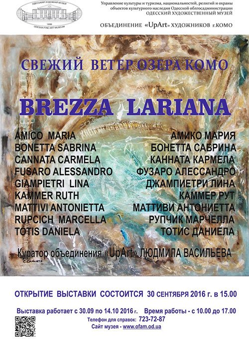 В выставочном зале Одесского художественного музея состоится открытие выставки "Свежий ветер озера Комо" художников объединения «UpArt» из города Комо, Италия.