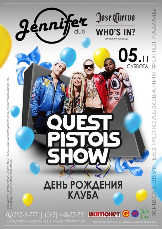 Пройдя десятилетний путь трансформаций от любительского балета – фрик-бойзбэнда и до масштабного профессионального танцевального шоу, Quest Pistols Show сегодня - это уникальное вокальное представление, соединившее в себе хореографию лучших танцоров мира, а также один из самых стабильных музыкальных брендов в шоу- бизнесе. Создателям шоу удалось раз и навсегда сломать стереотипы восприятия концертов и вечеринок.