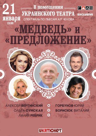 Искрометный, тонкий и трогательный спектакль. В основе его лежат две одноактных пьесы А.П. Чехова «Медведь» и «Предложение».