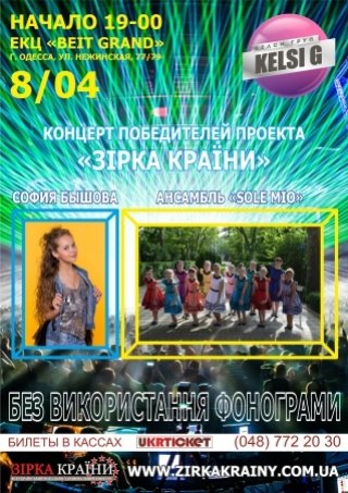 В этот день остоится концерт победителей проекта «Зірка Країни": София Бышова и Ансамбль «SOLE MIO».