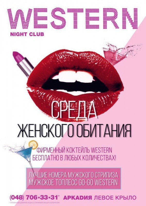 Каждую среду вечеринка «Среда Женского Обитания» в ночном клубе Western.