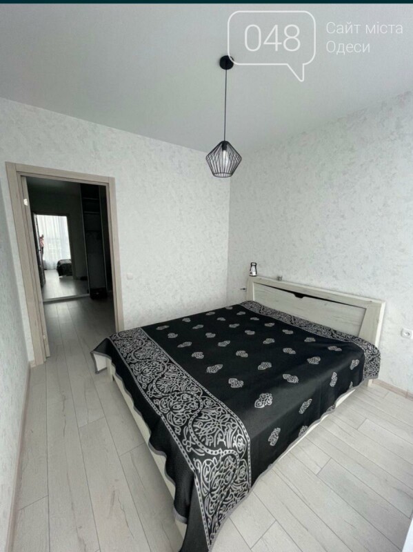 Комната разделена на спальню с двуспальной кроватью, проходная комната с диваном и огромным встроеным шкафом.