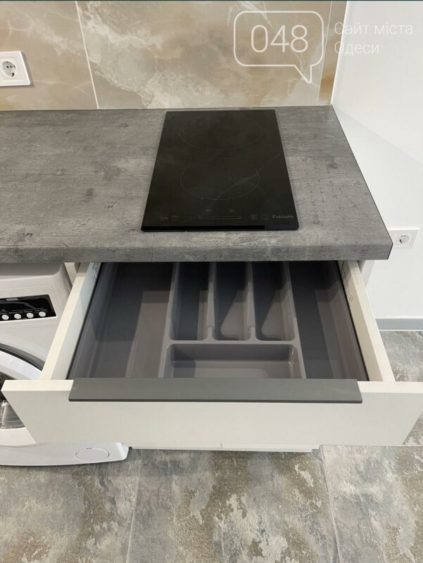 Квартира укомплектована: бойлером, стиральной машиной, кухонным гарнитуром сделанным на заказ, варочной поверхностью, вытяжкой, кондиционером, телевизором, двуспальной кроватью 1,6*2 м., объемной закроватной тумбой.