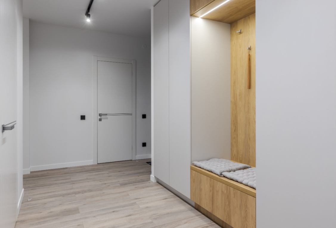Порожній простір під вікном може стати читальним куточком з вбудованими ящиками для книг та особистих речей. Площа під сходами або в нішах перетворюється на гардеробну зону з рейлингами та полицями. Навіть простір за дверима можна використати для вузьких полиць або органайзерів для побутової хімії. Стеля стає додатковою зоною для підвісних конструкцій і сіток для легких речей — від велосипедів до сезонного декору.