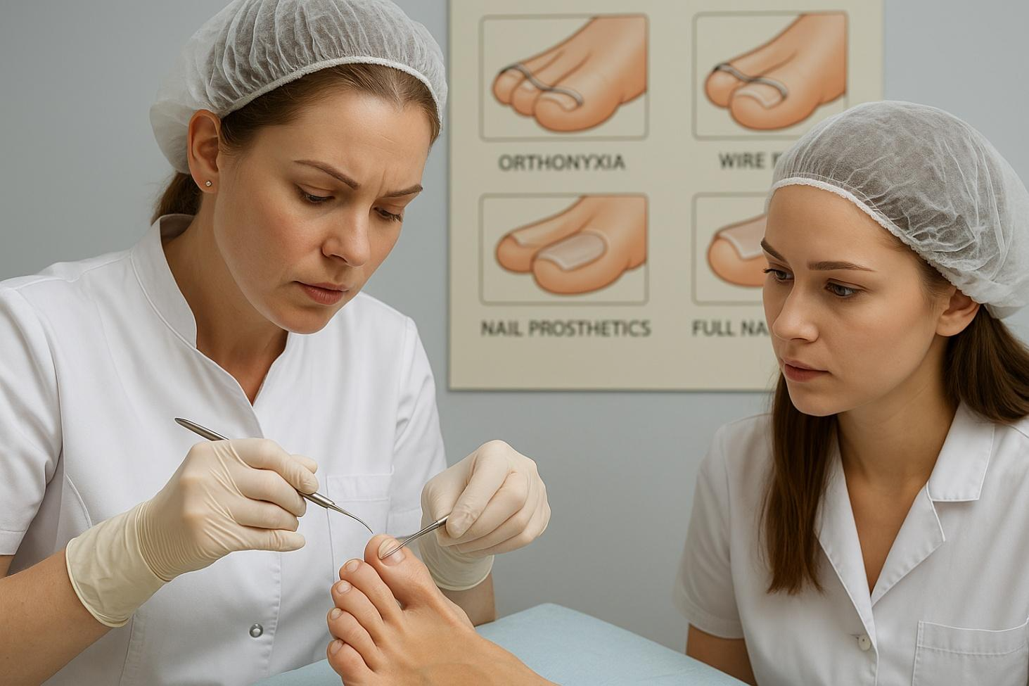 Когда ноготь сильно поврежден или утрачен, применяется протезирование — создание искусственной ногтевой пластины. Эта процедура помогает восстановить внешний вид и защитную функцию ногтя, а также предотвратить повторное врастание.