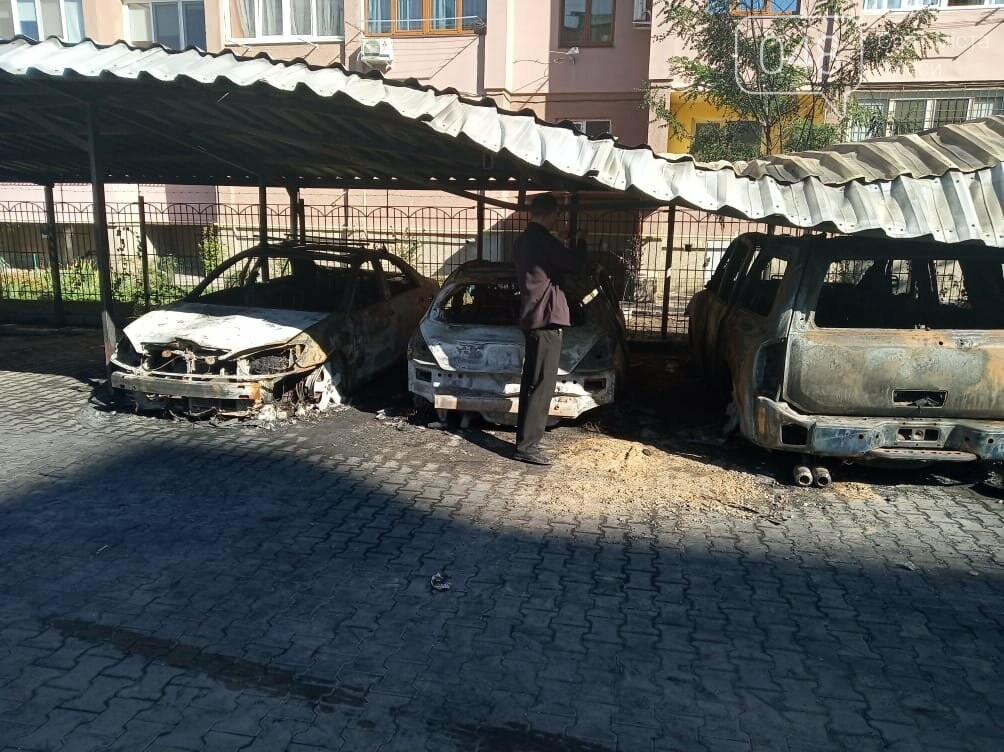 5 машин сгорели полностью. Хозяин одной машины горящую вывез и спас.