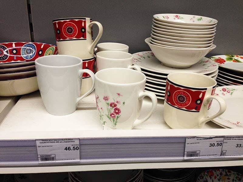 Так, Алина Поронник рассказывает в Facebook, как пыталась выбрать себе чашку, но сначала оказалось, что чашка с витрины не продается, а потом, что другая стоит в три раза больше, чем было написано на ценнике.