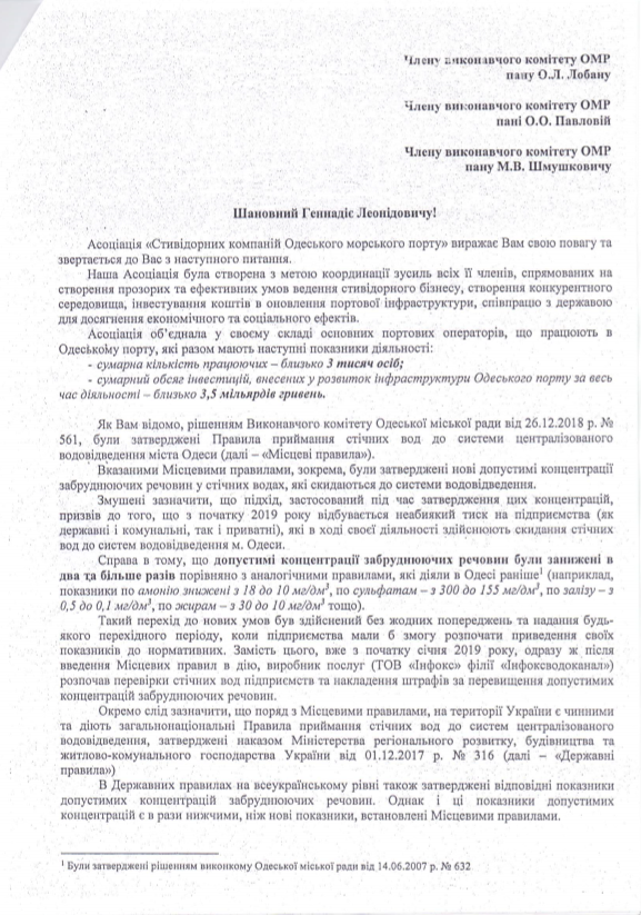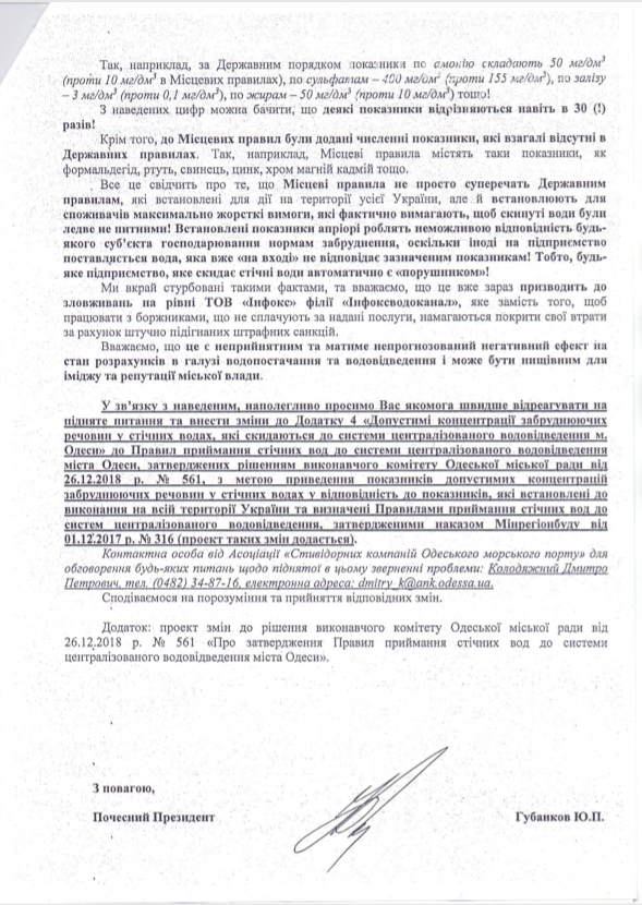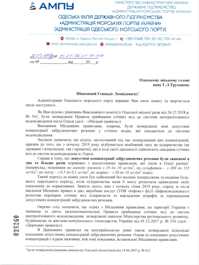 Ассоциация стивидоров и Администрация одесского порта направили в Одесский горсовет письма относительно завышенных требований к показателям сточных вод в городе.